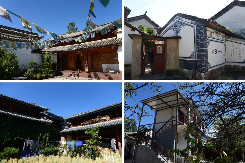 拼版照片:左上為鄭家莊藏族民居,右上為鄭家莊白族民居,左下為鄭家莊漢族民居,右下為鄭家莊納西族民居(2015年10月20日攝)。云南省大理白族自治州洱源縣三營鎮(zhèn)共和村鄭家莊是一個多民族聚集的村莊,分別有漢、白、藏、傣、納西、傈僳、彝共7個民族。多年來,這個村的村民團結互助,相互交融,和諧相處。新華社記者 胡超 攝