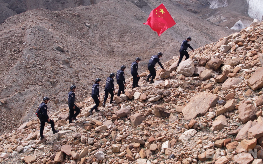 上午11時(shí),凜冽的寒風(fēng)中,5名移民管理警察整裝待發(fā)。他們從普蘭口岸國門出發(fā),朝著中尼界樁的方向,踏上了巡邏之路。