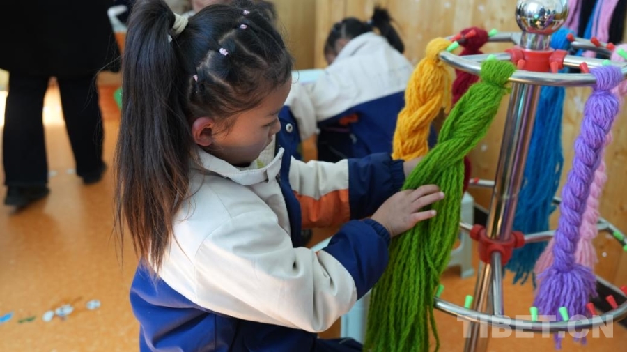 幼兒園主教學(xué)樓內(nèi)懸掛著一幅書法作品,上面寫道:“鑄牢中華民族共同體意識從娃娃抓起?!闭驗樯钤诿褡褰煌涣鹘蝗诘默F(xiàn)實環(huán)境中,了解各民族和睦相親的真實故事,這里的孩子們才能在第一時間毫不猶豫地回答出五十六個民族是一家,才能從心底認(rèn)同中華民族是我們共同的名字。中華民族共同體意識正在一代又一代娃娃的心中萌發(fā)新芽、深深扎根。(中國西藏網(wǎng) 實習(xí)記者/宋俊)