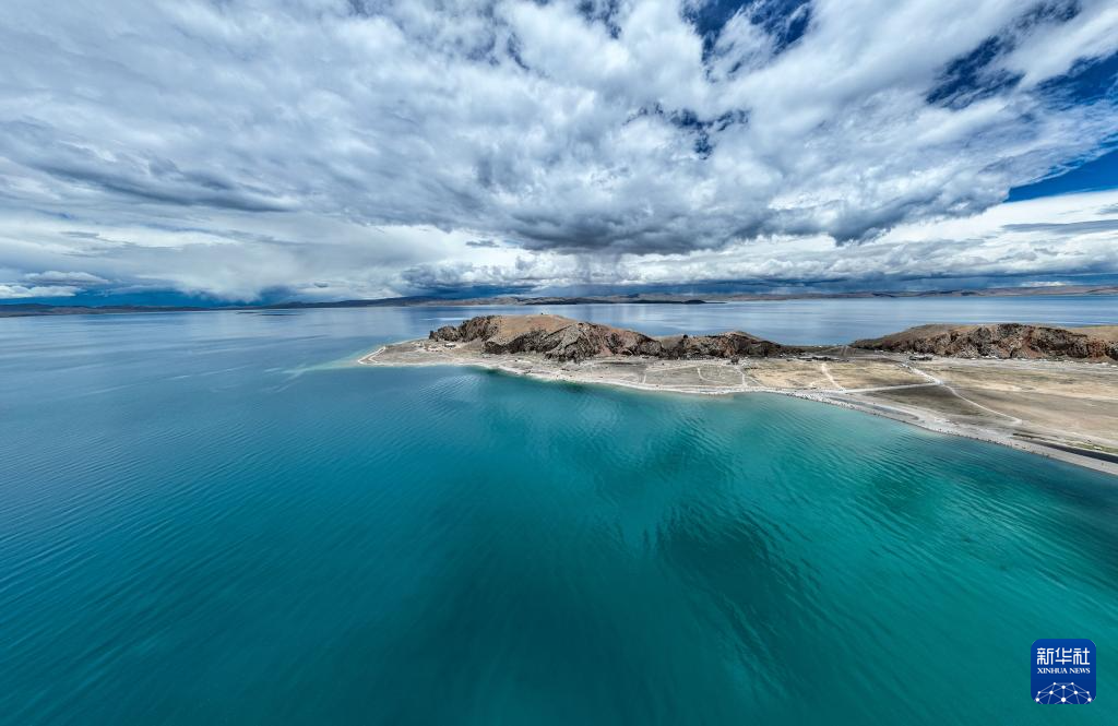 7月16日拍攝的納木錯扎西島景區(qū)風(fēng)光(無人機(jī)照片)。新華社記者 晉美多吉 攝