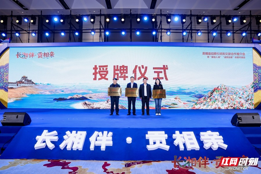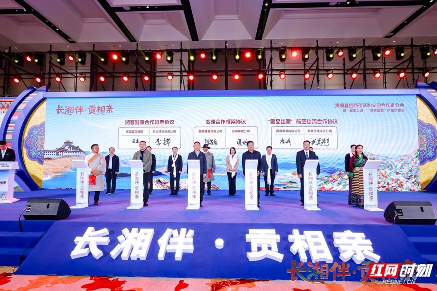 在簽約環(huán)節(jié),貢嘎縣與多家企業(yè)就農(nóng)產(chǎn)品采購、文旅合作達成共識。活動現(xiàn)場還揭牌成立“貢嘎藏品入湘與湘客游藏服務中心”“貢嘎大學生入湘就業(yè)服務中心”“貢嘎區(qū)外招商引資服務中心”,推動湘藏協(xié)作走向機制化、常態(tài)化。