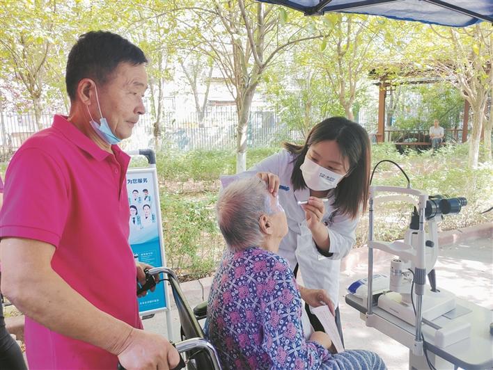 8月8日,“情暖兵團(tuán)·守護(hù)光明”公益項(xiàng)目醫(yī)療服務(wù)隊(duì)在十一師開展眼疾篩查活動。圖為醫(yī)療服務(wù)隊(duì)隊(duì)員為老人做眼部檢查。 兵團(tuán)日報(bào)全媒體記者 陳瓊 攝