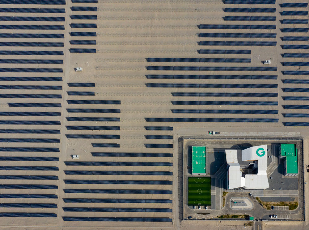 9月22日在新疆巴音郭楞蒙古自治州若羌縣拍攝的中國(guó)綠發(fā)新疆中綠電若羌400萬(wàn)千瓦光伏項(xiàng)目(無(wú)人機(jī)照片)。該項(xiàng)目每年可發(fā)電69.08億千瓦時(shí),滿足南疆200萬(wàn)戶家庭用電需求,減排208.24萬(wàn)噸煤耗。