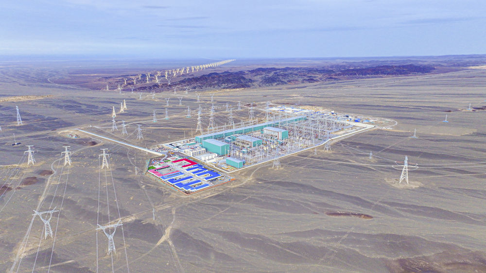 在新疆哈密地區(qū)拍攝的哈密±800千伏巴里坤換流站(4月17日攝,無(wú)人機(jī)照片)。