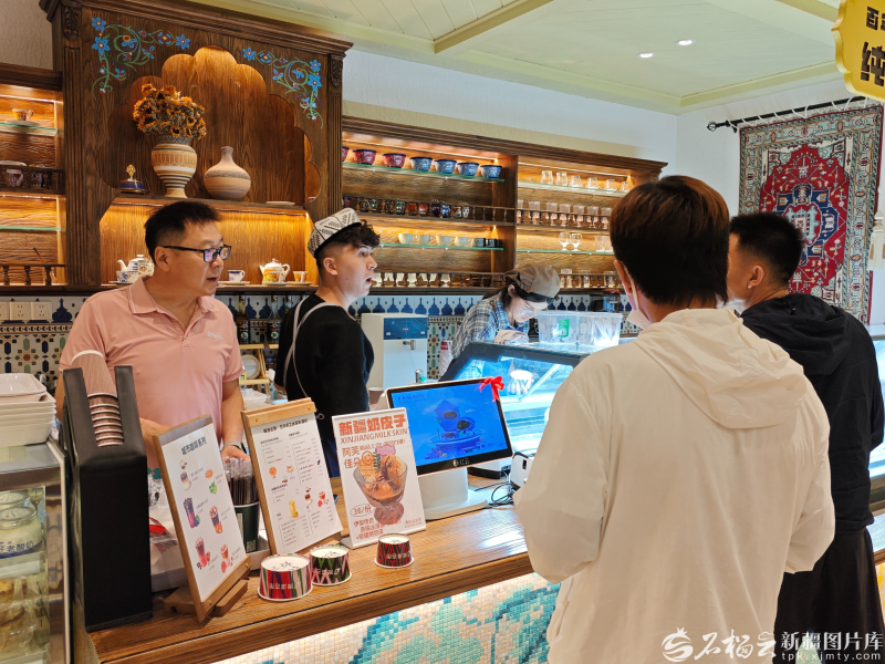 游客在冰激凌店內(nèi)選購(gòu)甜品。石榴云/新疆日?qǐng)?bào)記者 宋海波攝