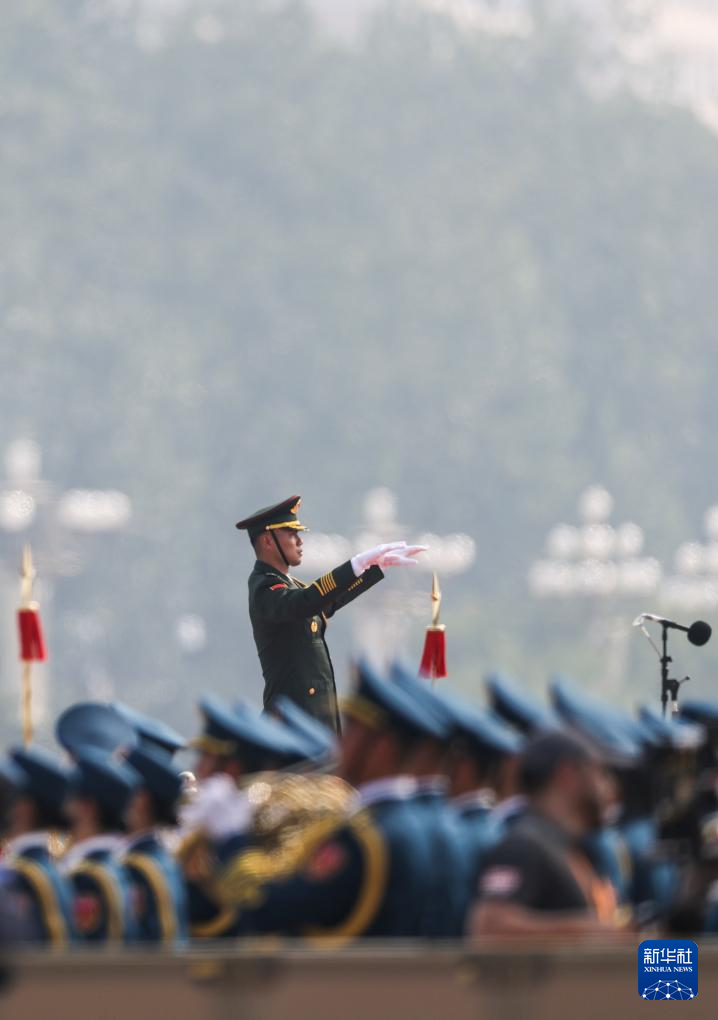 9月3日,紀(jì)念中國人民抗日戰(zhàn)爭暨世界反法西斯戰(zhàn)爭勝利80周年大會在北京天安門廣場隆重舉行。這是中國人民解放軍聯(lián)合軍樂團(tuán)在演奏。