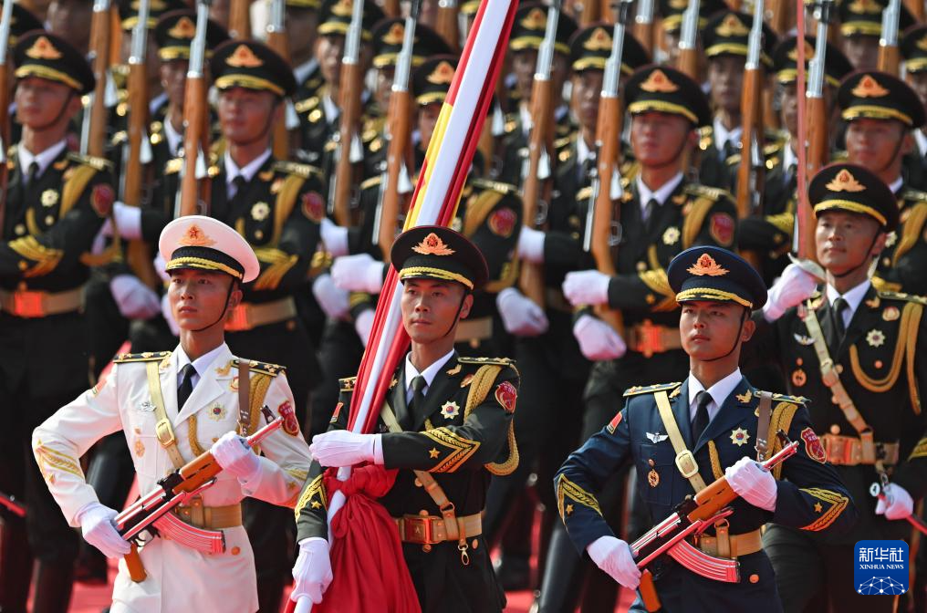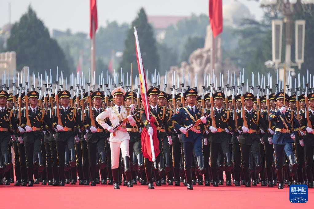 9月3日,紀(jì)念中國人民抗日戰(zhàn)爭暨世界反法西斯戰(zhàn)爭勝利80周年大會在北京隆重舉行。這是國旗護(hù)衛(wèi)隊(duì)列隊(duì)。