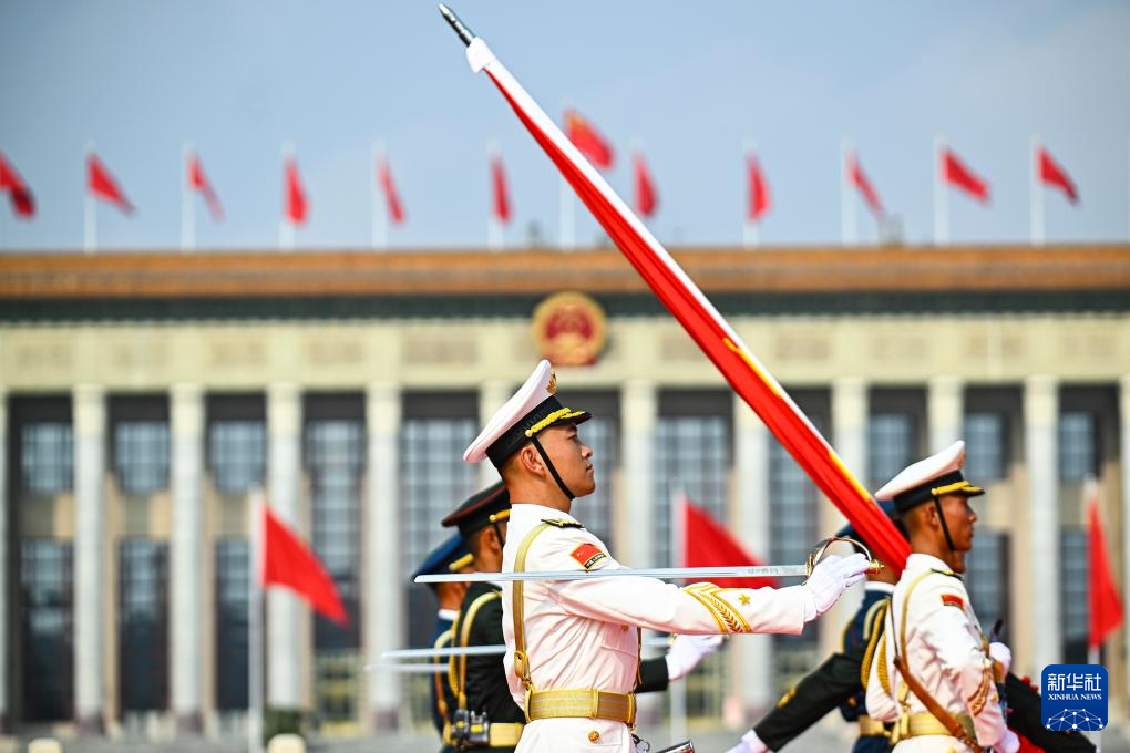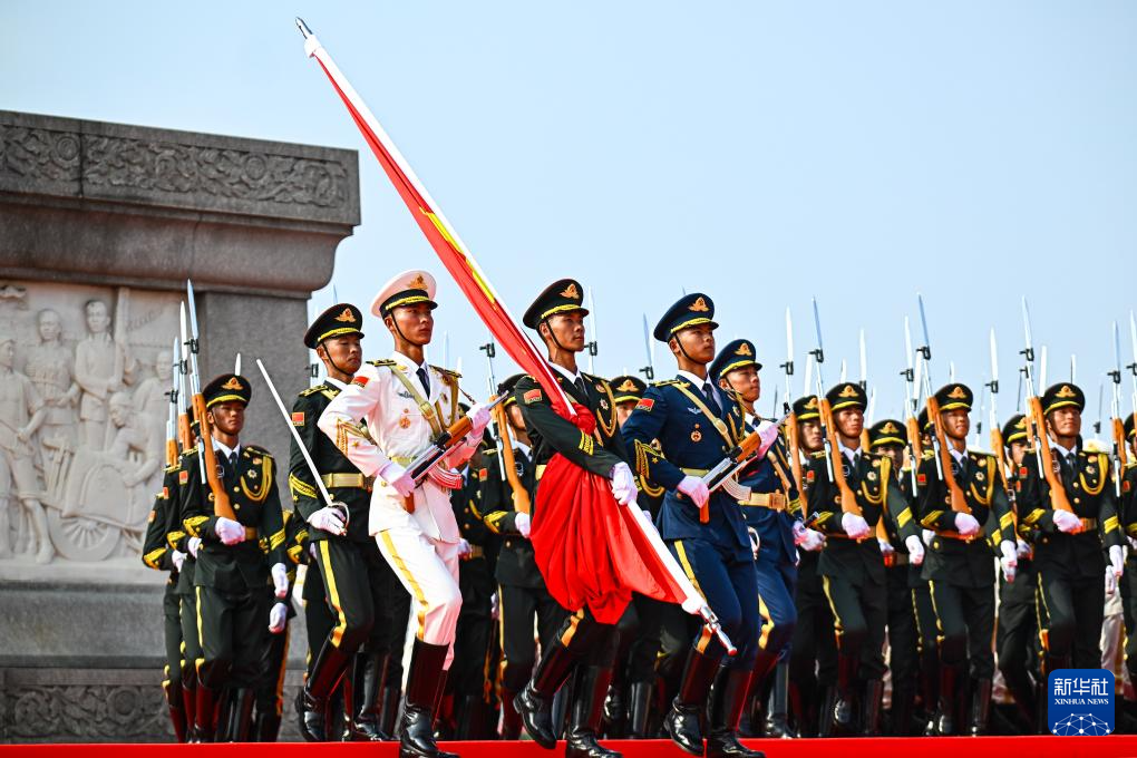 9月3日,紀(jì)念中國人民抗日戰(zhàn)爭暨世界反法西斯戰(zhàn)爭勝利80周年大會在北京隆重舉行。這是國旗護(hù)衛(wèi)隊(duì)在天安門廣場上列隊(duì)。