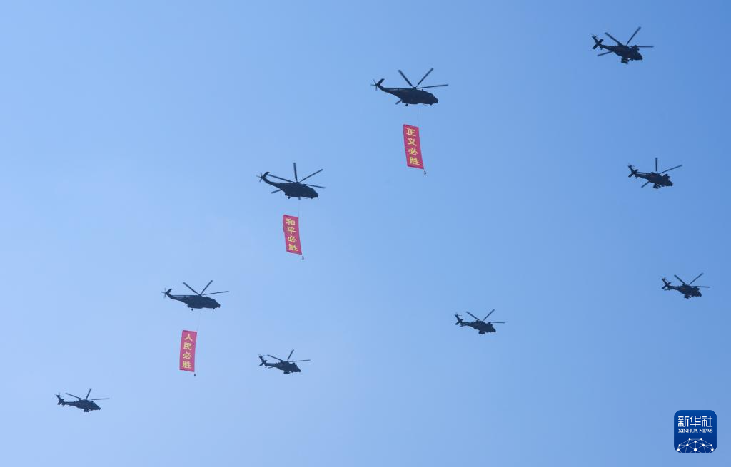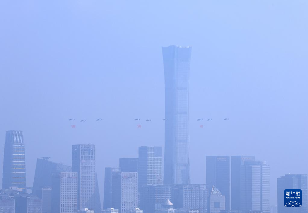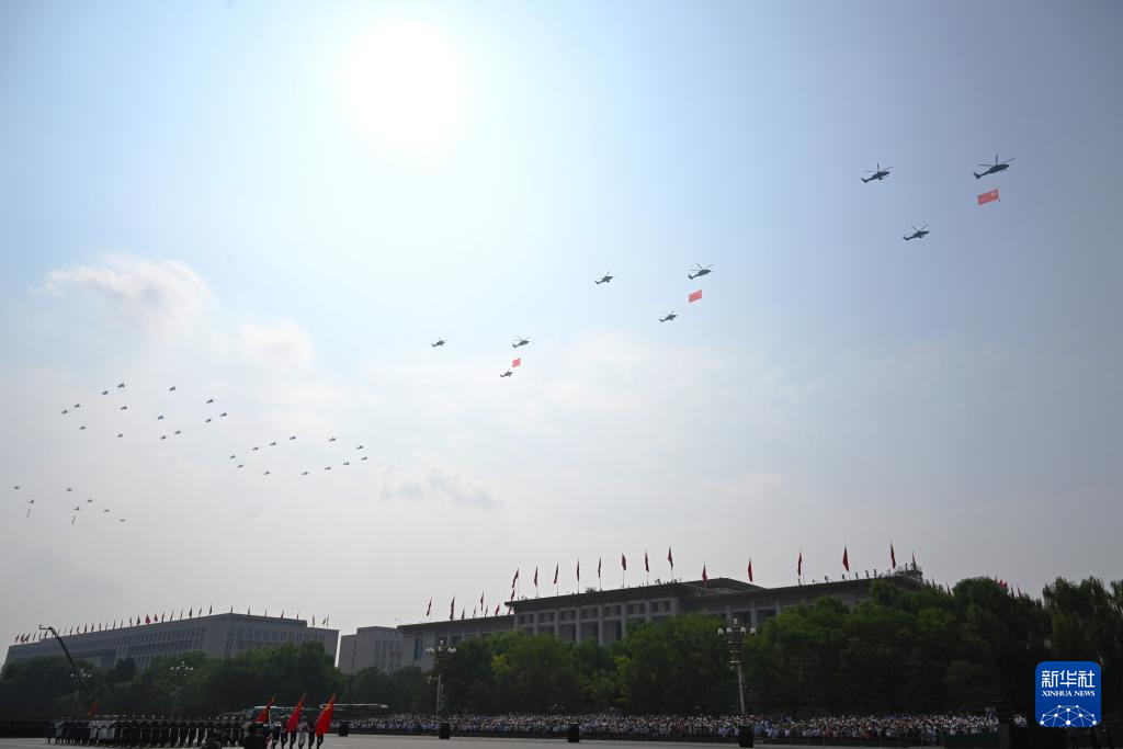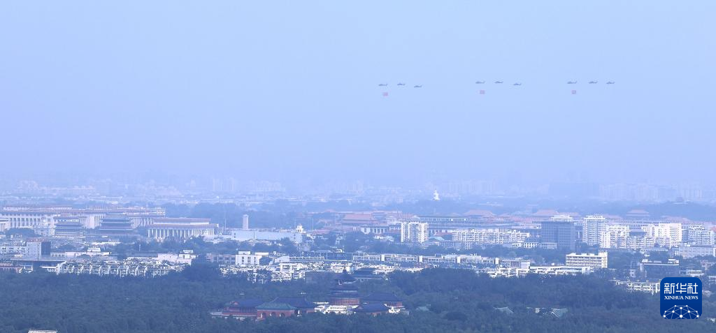 9月3日,紀(jì)念中國人民抗日戰(zhàn)爭暨世界反法西斯戰(zhàn)爭勝利80周年大會在北京隆重舉行。這是空中護(hù)旗梯隊(duì)。