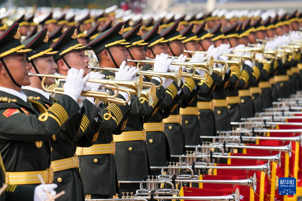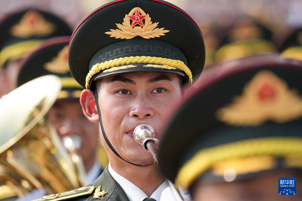9月3日,紀(jì)念中國人民抗日戰(zhàn)爭暨世界反法西斯戰(zhàn)爭勝利80周年大會在北京隆重舉行。這是中國人民解放軍聯(lián)合軍樂團(tuán)在演奏。