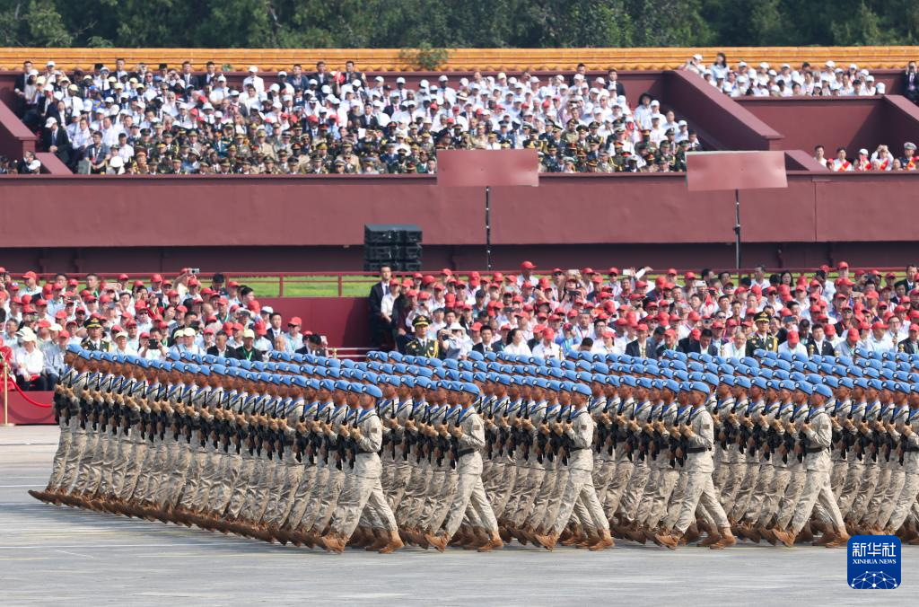 9月3日,紀念中國人民抗日戰(zhàn)爭暨世界反法西斯戰(zhàn)爭勝利80周年大會在北京隆重舉行。這是維和部隊方隊接受檢閱。
