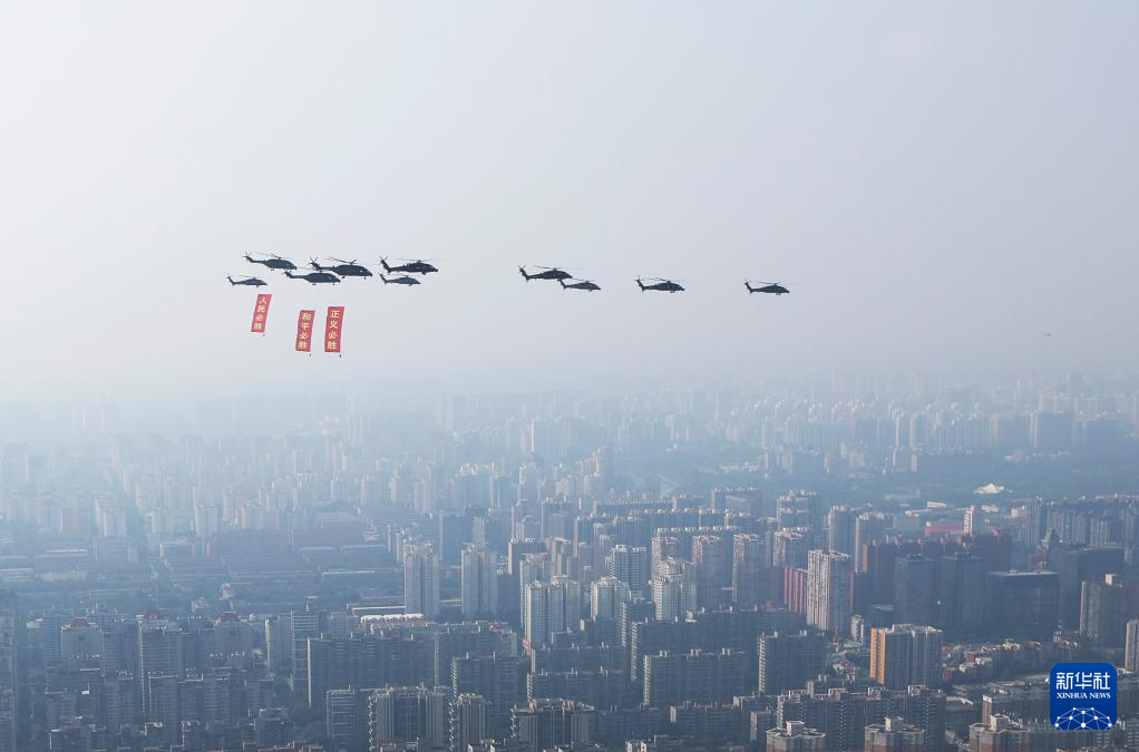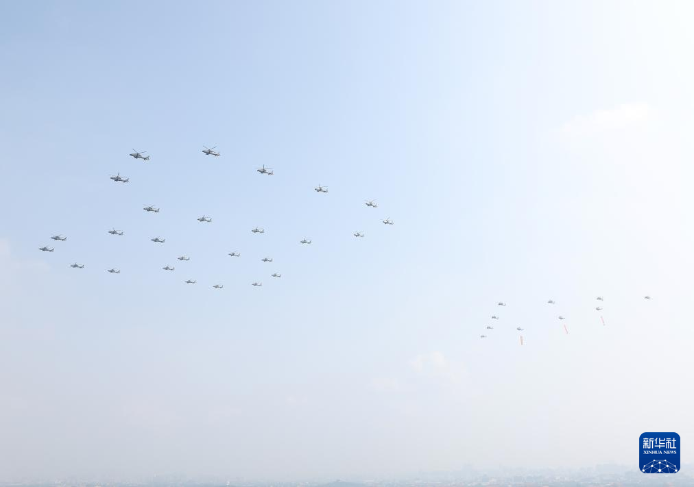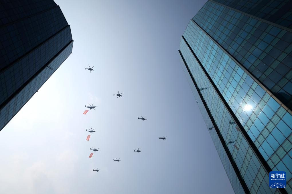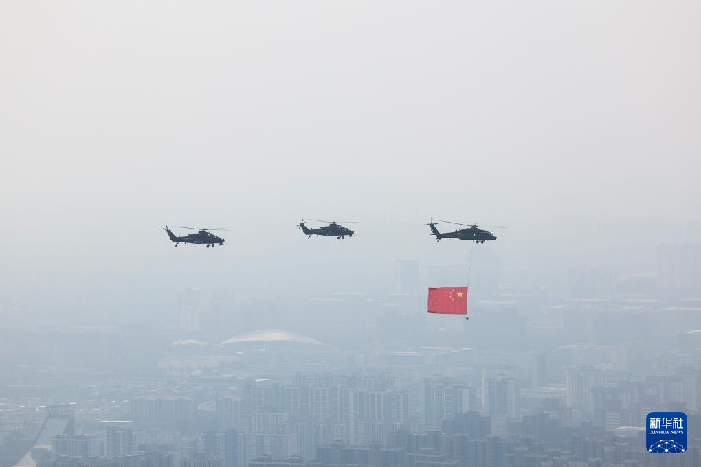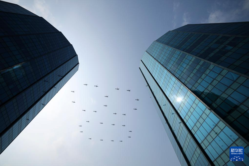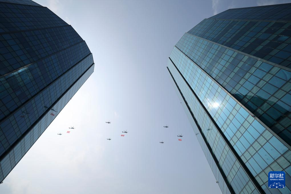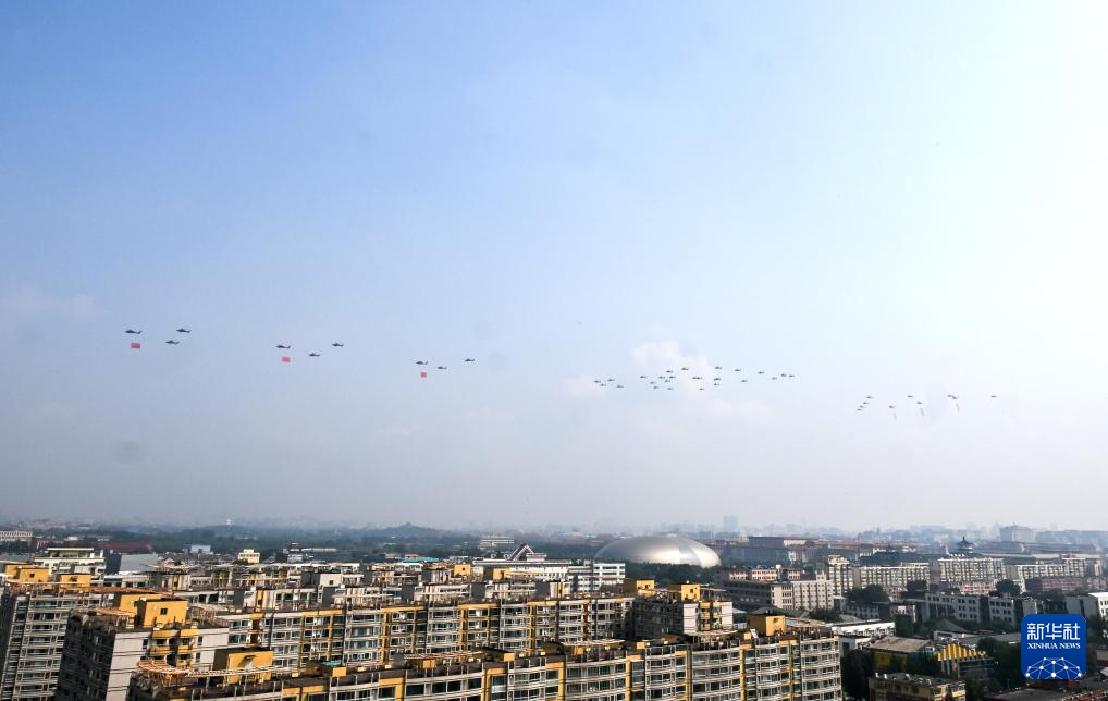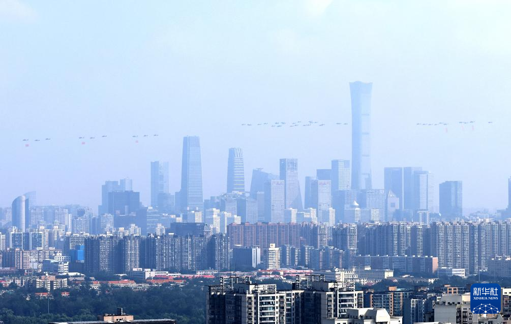 9月3日,紀念中國人民抗日戰(zhàn)爭暨世界反法西斯戰(zhàn)爭勝利80周年大會在北京隆重舉行。這是空中護旗梯隊。