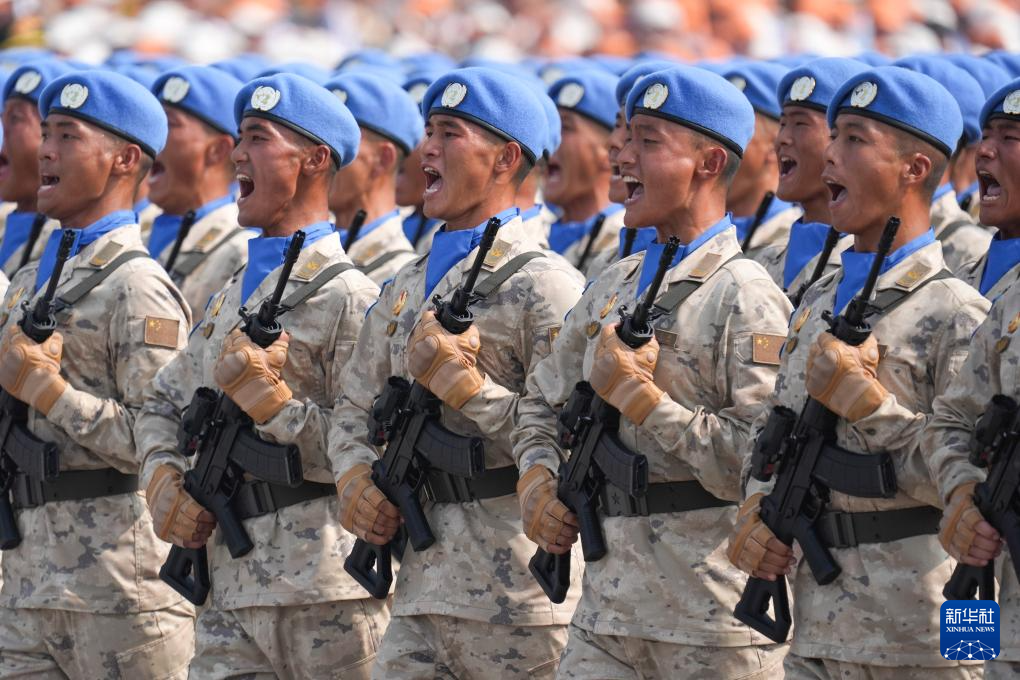 9月3日,紀念中國人民抗日戰(zhàn)爭暨世界反法西斯戰(zhàn)爭勝利80周年大會在北京隆重舉行。這是維和部隊方隊接受檢閱。