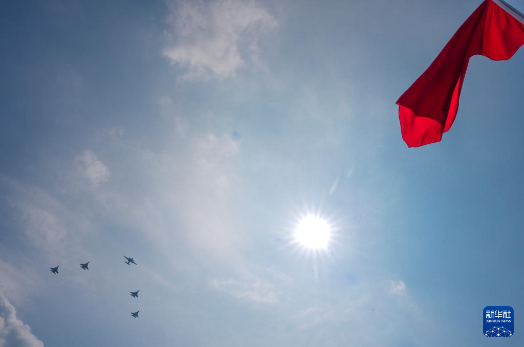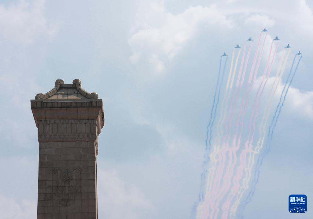 9月3日,紀(jì)念中國(guó)人民抗日戰(zhàn)爭(zhēng)暨世界反法西斯戰(zhàn)爭(zhēng)勝利80周年大會(huì)在北京隆重舉行。這是空中護(hù)旗梯隊(duì)飛過(guò)天安門廣場(chǎng)上空。