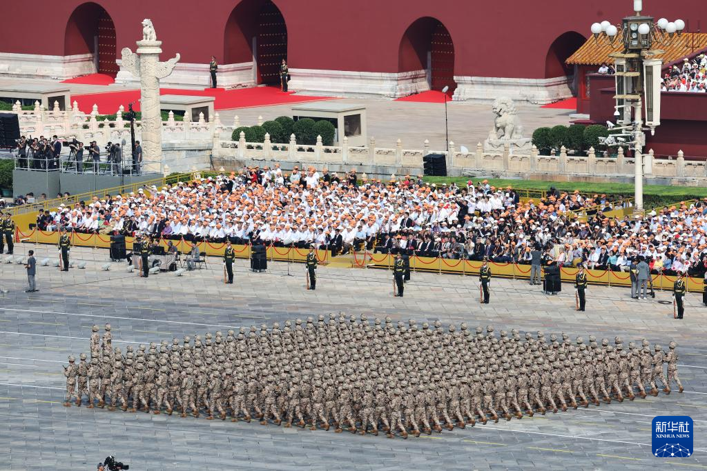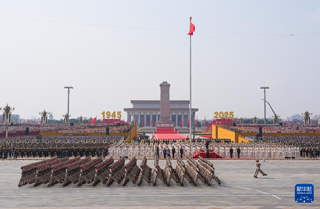 9月3日,紀(jì)念中國(guó)人民抗日戰(zhàn)爭(zhēng)暨世界反法西斯戰(zhàn)爭(zhēng)勝利80周年大會(huì)在北京隆重舉行。這是中國(guó)人民解放軍儀仗方隊(duì)走過(guò)天安門廣場(chǎng)。