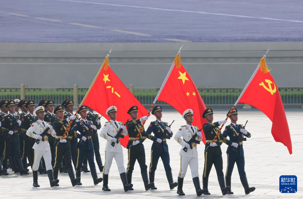 9月3日,紀(jì)念中國(guó)人民抗日戰(zhàn)爭(zhēng)暨世界反法西斯戰(zhàn)爭(zhēng)勝利80周年大會(huì)在北京隆重舉行。這是國(guó)旗護(hù)衛(wèi)隊(duì)在天安門廣場(chǎng)列隊(duì)。