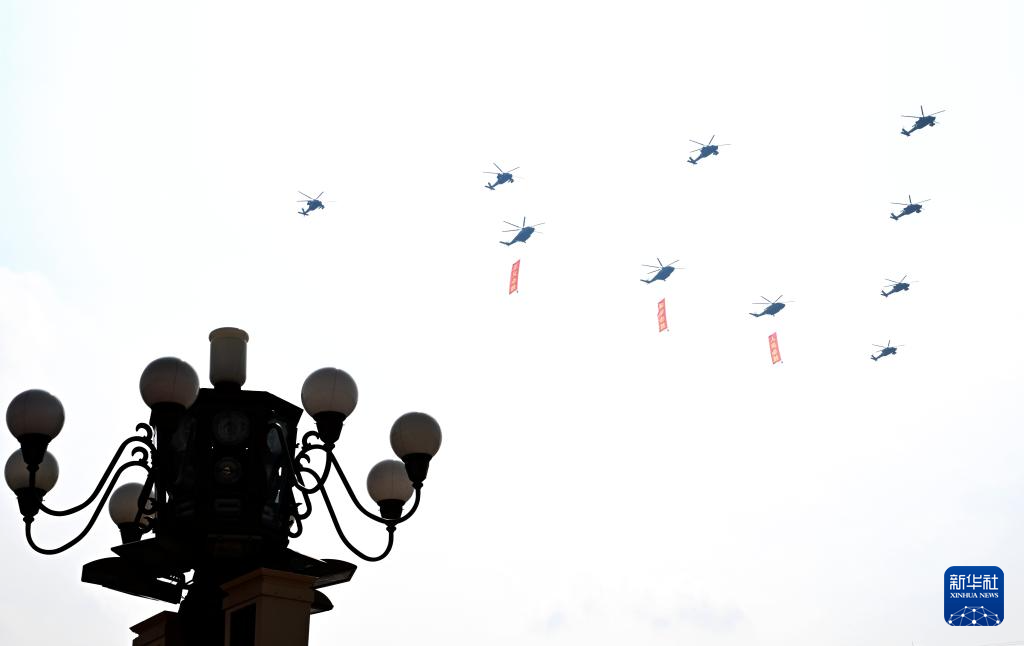 9月3日,紀(jì)念中國(guó)人民抗日戰(zhàn)爭(zhēng)暨世界反法西斯戰(zhàn)爭(zhēng)勝利80周年大會(huì)在北京隆重舉行。這是空中護(hù)旗梯隊(duì)通過(guò)天安門廣場(chǎng)。