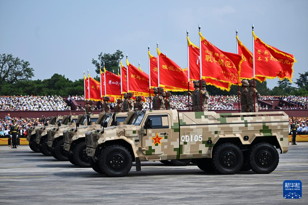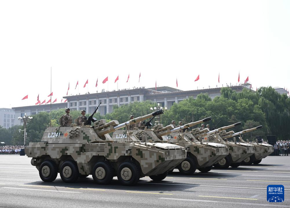 9月3日,紀(jì)念中國(guó)人民抗日戰(zhàn)爭(zhēng)暨世界反法西斯戰(zhàn)爭(zhēng)勝利80周年大會(huì)在北京隆重舉行。這是裝備方隊(duì)接受檢閱。