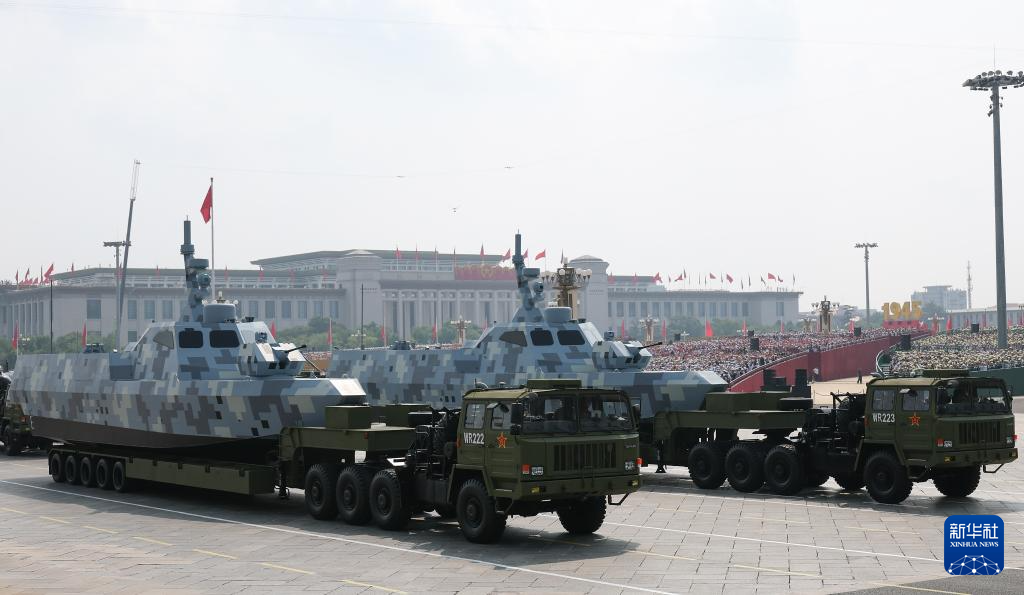 9月3日,紀(jì)念中國(guó)人民抗日戰(zhàn)爭(zhēng)暨世界反法西斯戰(zhàn)爭(zhēng)勝利80周年大會(huì)在北京隆重舉行。這是海上無(wú)人作戰(zhàn)方隊(duì)接受檢閱。