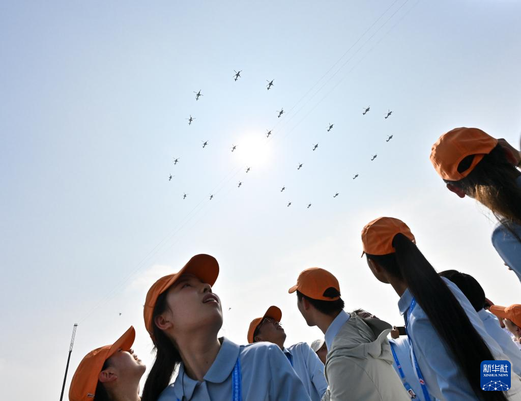 9月3日,紀(jì)念中國(guó)人民抗日戰(zhàn)爭(zhēng)暨世界反法西斯戰(zhàn)爭(zhēng)勝利80周年大會(huì)在北京隆重舉行。這是觀眾拍攝教練機(jī)梯隊(duì)接受檢閱。