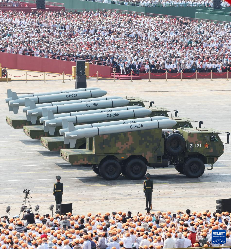 9月3日,紀念中國人民抗日戰(zhàn)爭暨世界反法西斯戰(zhàn)爭勝利80周年大會在北京隆重舉行。這是巡航導彈方隊接受檢閱。