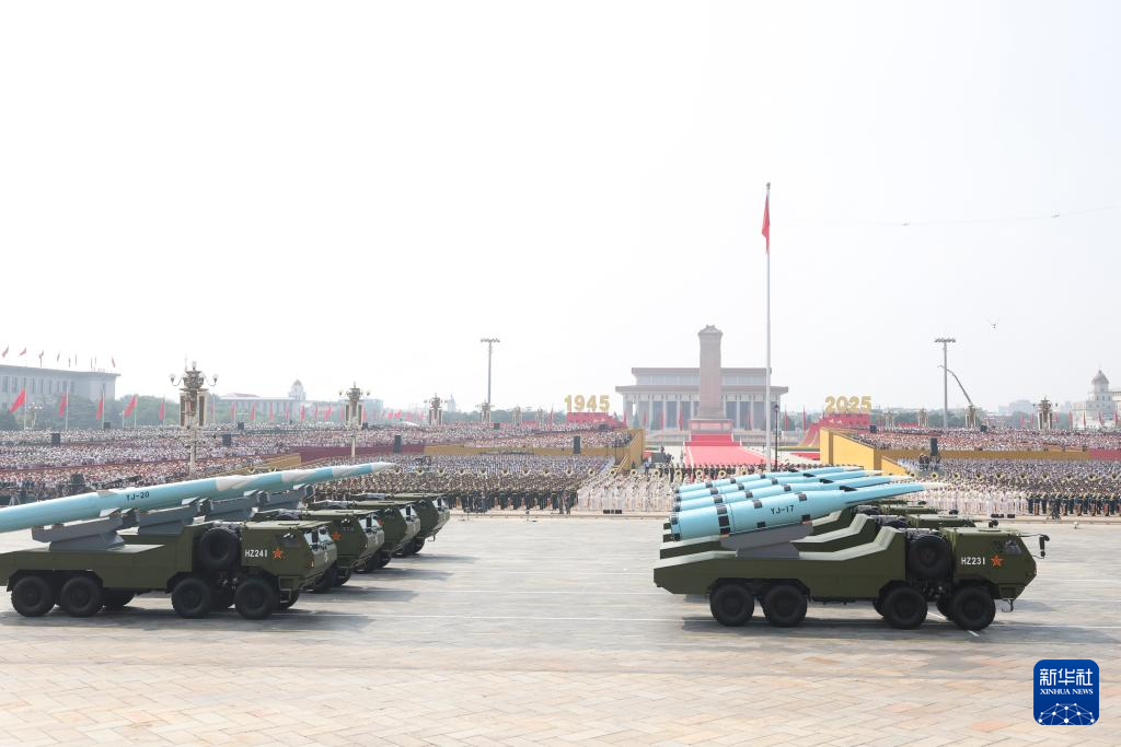 9月3日,紀念中國人民抗日戰(zhàn)爭暨世界反法西斯戰(zhàn)爭勝利80周年大會在北京隆重舉行。這是反艦導彈方隊接受檢閱。