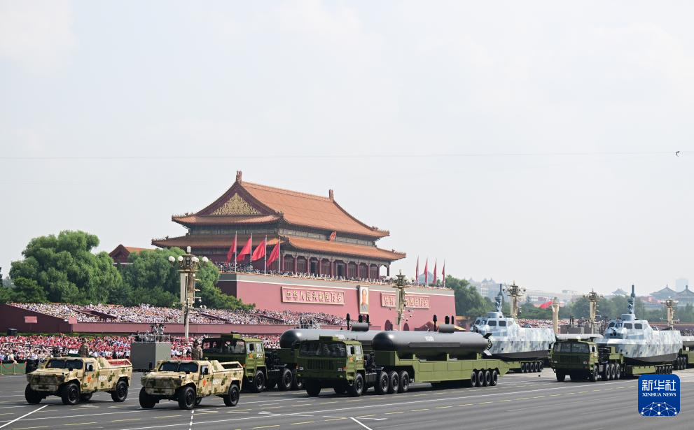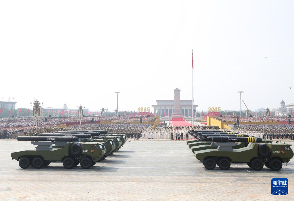 9月3日,紀念中國人民抗日戰(zhàn)爭暨世界反法西斯戰(zhàn)爭勝利80周年大會在北京隆重舉行。這是水下兵器方隊接受檢閱。