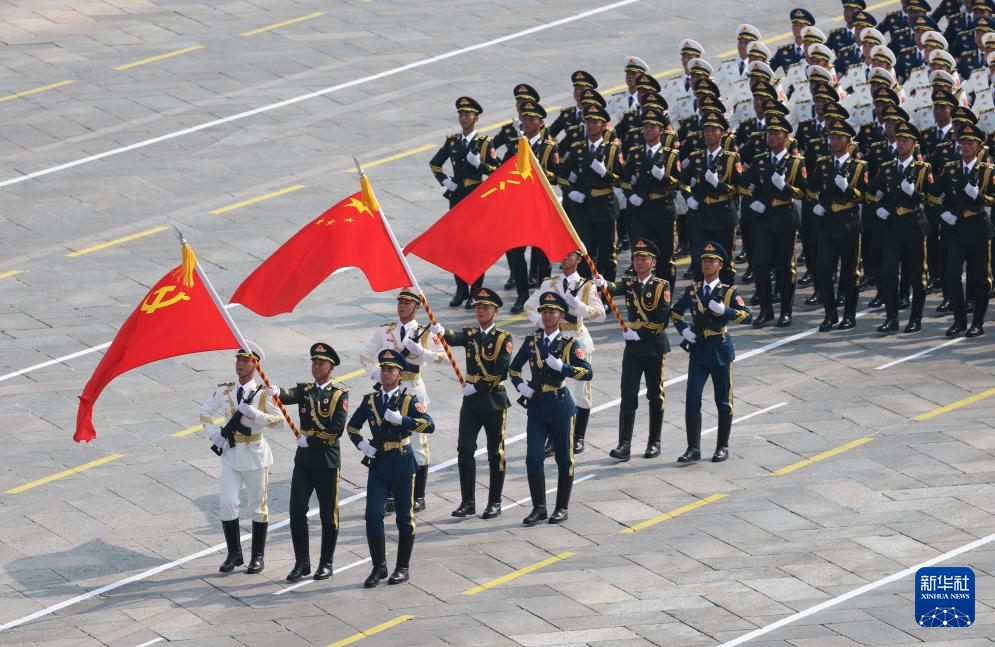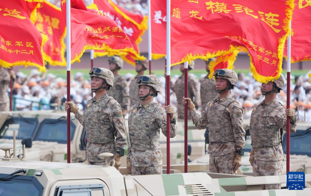 9月3日,紀念中國人民抗日戰(zhàn)爭暨世界反法西斯戰(zhàn)爭勝利80周年大會在北京隆重舉行。這是戰(zhàn)旗方隊接受檢閱。