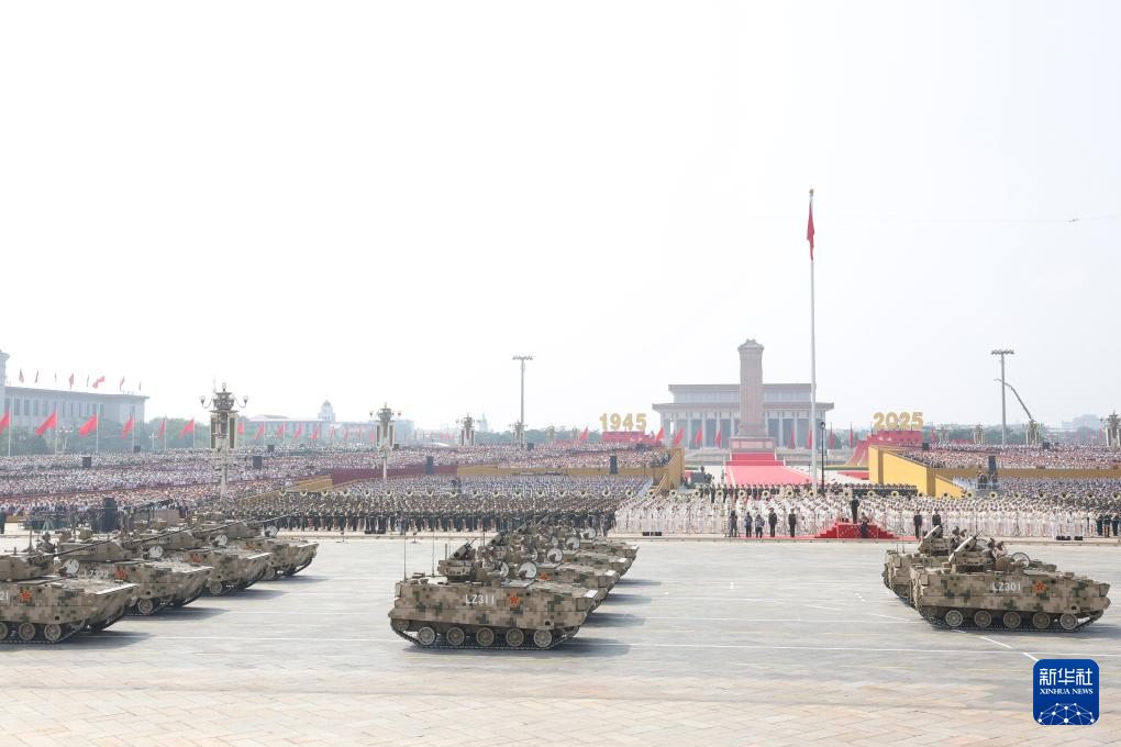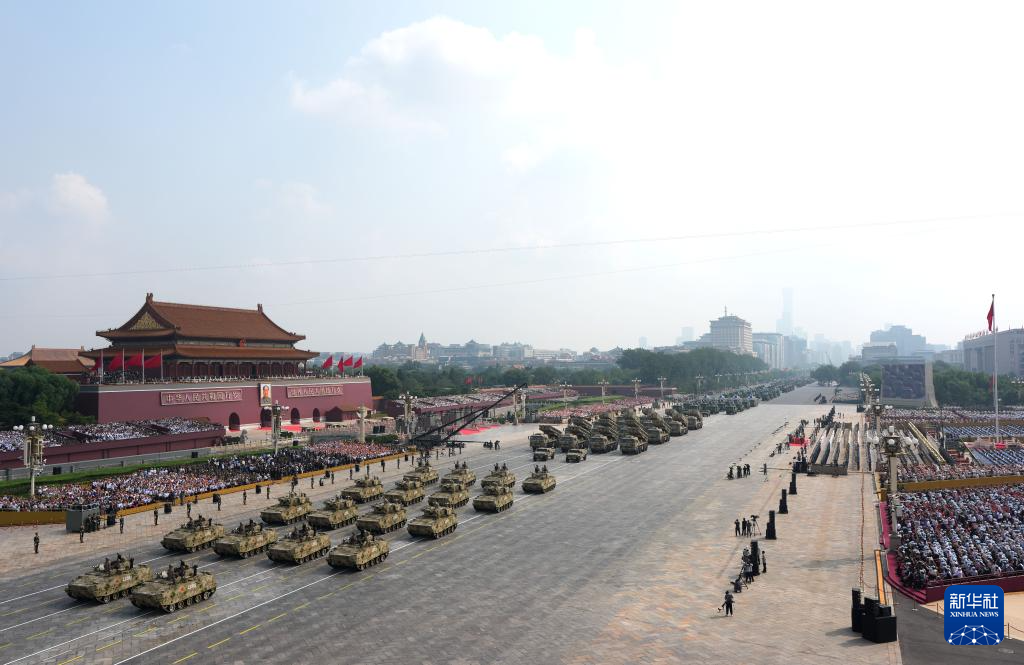 9月3日,紀念中國人民抗日戰(zhàn)爭暨世界反法西斯戰(zhàn)爭勝利80周年大會在北京隆重舉行。這是裝備方隊接受檢閱。