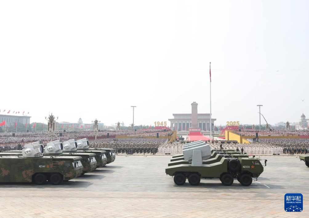 9月3日,紀念中國人民抗日戰(zhàn)爭暨世界反法西斯戰(zhàn)爭勝利80周年大會在北京隆重舉行。這是艦載防空武器方隊接受檢閱。