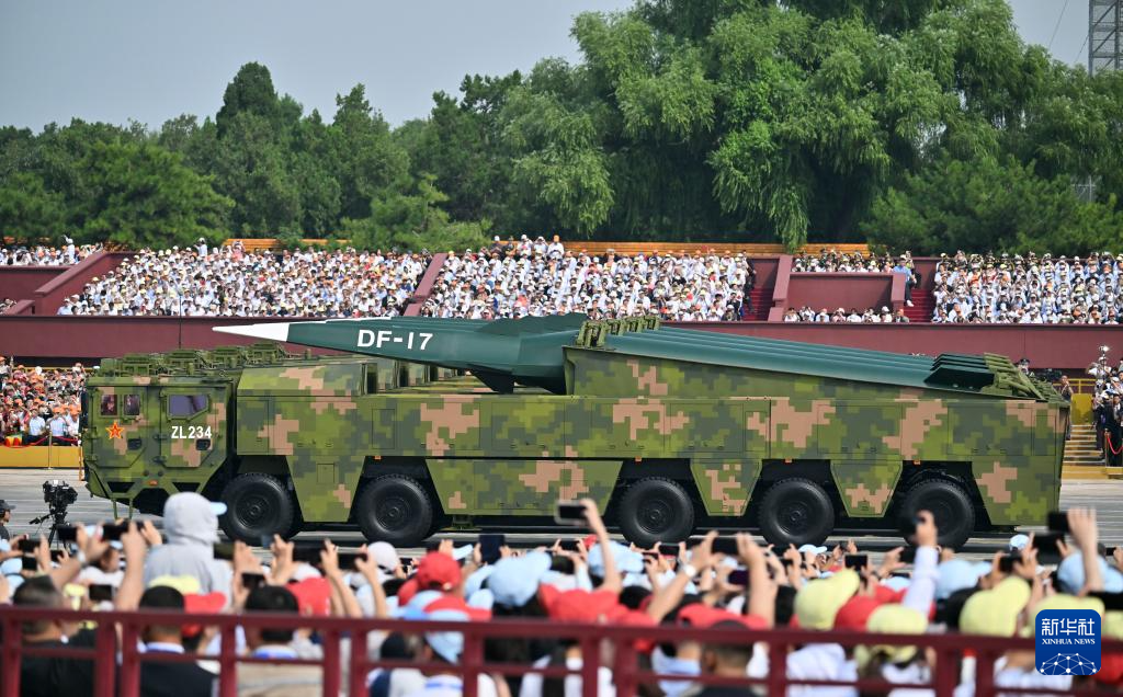 9月3日,紀念中國人民抗日戰(zhàn)爭暨世界反法西斯戰(zhàn)爭勝利80周年大會在北京隆重舉行。這是高超聲速導彈方隊通過天安門廣場。