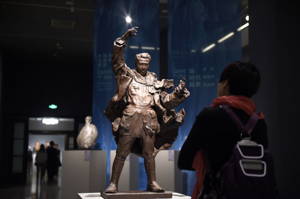 2018年4月1日,參觀者在北京的中國美術(shù)館參觀雕塑作品“冼星海”。
