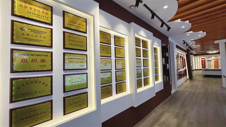 在校史館的圖片墻上,學(xué)校舉行“六一”文藝演出的照片吸引了記者的注意。從1985年羅布林卡黑白照片里孩子們歡快表演的身影,到上世紀(jì)90年代初宗角祿康公園彩色照片中孩子們慶?!傲弧眹H兒童節(jié)的文藝表演,再到1992年至2012年間,學(xué)校舉辦慶?!傲弧眹H兒童節(jié)文藝演出。20年間,學(xué)校進(jìn)一步豐富特色教育,設(shè)有管樂隊(duì)、民樂特長班、手工特長班、美術(shù)特長班等,并組織管樂隊(duì)學(xué)生在布達(dá)拉宮廣場參加各類活動(dòng),為學(xué)生全面發(fā)展搭建起更廣闊的展示平臺(tái)。