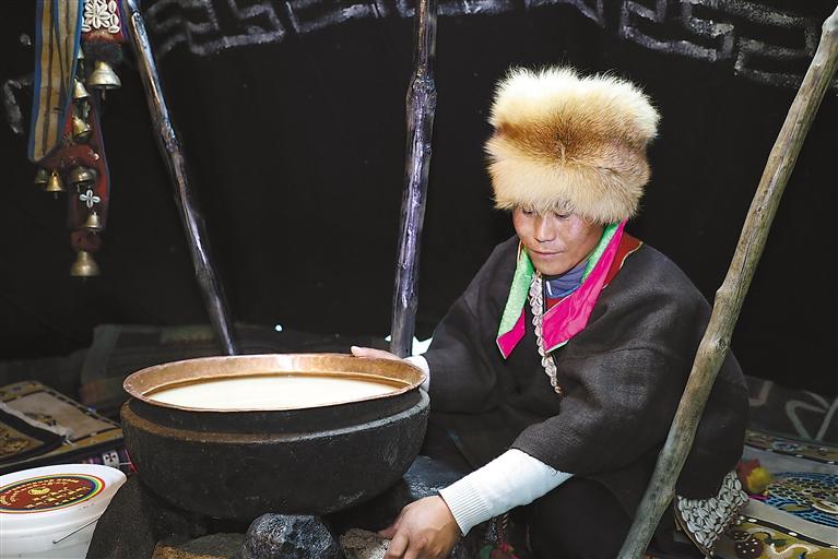 曲松縣邱多江鄉(xiāng)瑪如村村民在制作奶渣。通訊員 扎西桑珠 攝