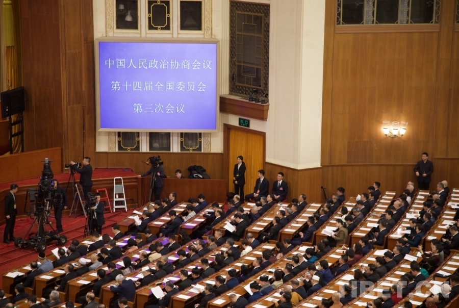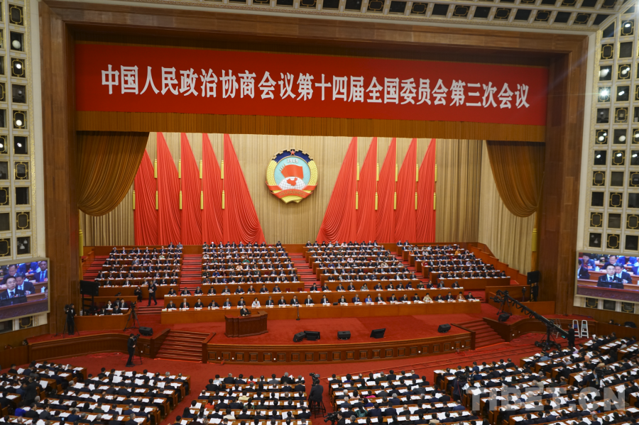 圖為全國(guó)政協(xié)十四屆三次會(huì)議第二次全體會(huì)議現(xiàn)場(chǎng) 攝影:楊眉笑