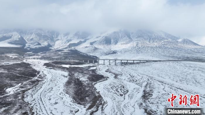 驅(qū)車行駛在云霧繚繞的灰白色山間,祁連山的蒼勁脈絡(luò)被積雪覆蓋,蘭新高鐵穿山而過,好像走進(jìn)郭金萍描繪的水墨畫卷中。