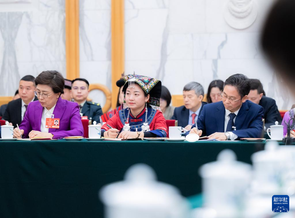 3月5日,代表們?cè)谫F州代表團(tuán)全體會(huì)議上認(rèn)真聽會(huì)。當(dāng)日下午,十四屆全國人大三次會(huì)議各代表團(tuán)舉行全體會(huì)議,審議政府工作報(bào)告。新華社記者 翟健嵐 攝
