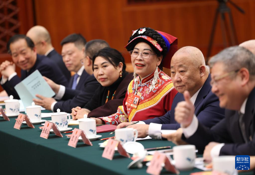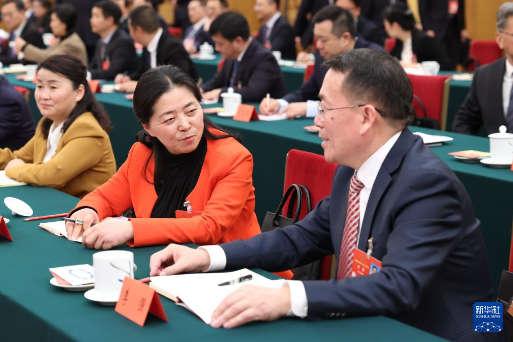 3月5日,代表們?cè)谒拇ù韴F(tuán)全體會(huì)議前交談。當(dāng)日下午,十四屆全國人大三次會(huì)議各代表團(tuán)舉行全體會(huì)議,審議政府工作報(bào)告。新華社記者 劉衛(wèi)兵 攝