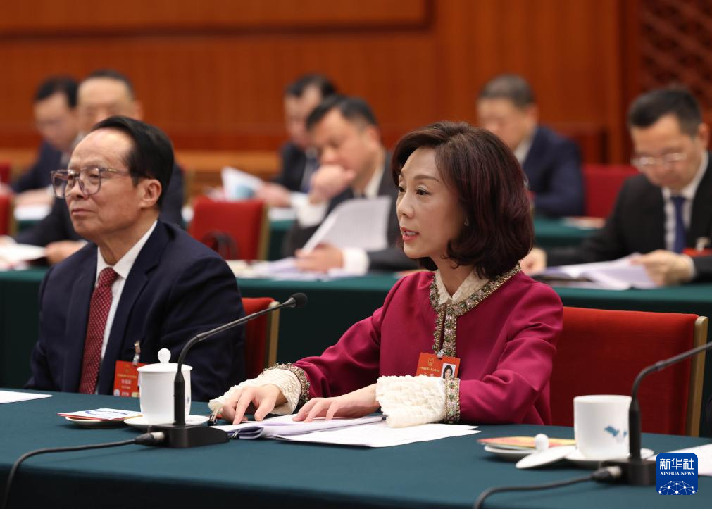 3月5日,全國人大代表袁姝在貴州代表團(tuán)全體會(huì)議上發(fā)言。當(dāng)日下午,十四屆全國人大三次會(huì)議各代表團(tuán)舉行全體會(huì)議,審議政府工作報(bào)告。新華社記者 翟健嵐 攝
