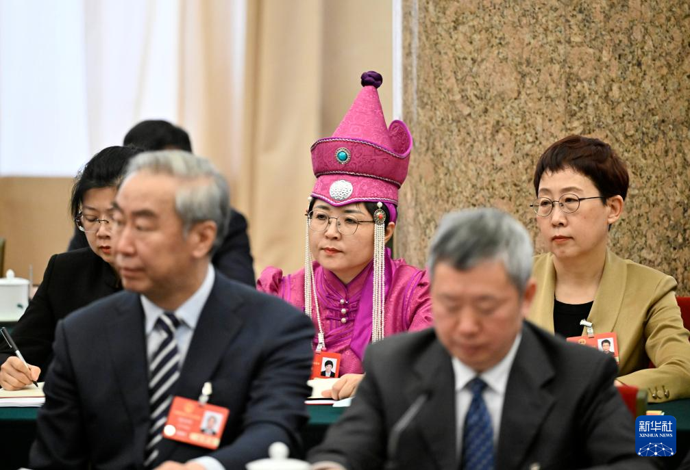 3月5日,代表們?cè)谶|寧代表團(tuán)全體會(huì)議上認(rèn)真聽取發(fā)言。當(dāng)日下午,十四屆全國人大三次會(huì)議各代表團(tuán)舉行全體會(huì)議,審議政府工作報(bào)告。新華社記者 殷博古 攝