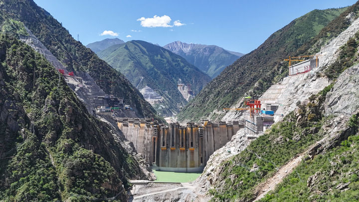 這是2025年6月30日拍攝的建設(shè)中的葉巴灘水電站(無人機照片)。該水電站地處四川甘孜州白玉縣與西藏昌都市貢覺縣交界處的金沙江上游,總裝機容量224萬千瓦。新華社發(fā)(陳浩 攝)