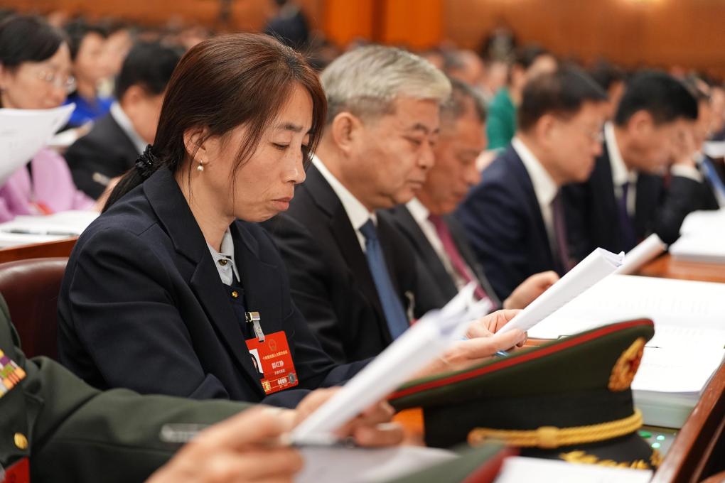 3月5日,張瓊麗代表在十四屆全國人大四次會議開幕會上聽會。新華社記者 邢廣利 攝