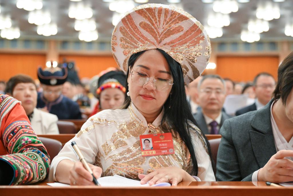 3月4日,蘇海珍委員在全國政協(xié)十四屆四次會議開幕會上。新華社記者 陳益宸 攝