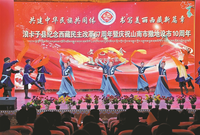 浪卡子縣舉辦紀念西藏民主改革67周年暨慶祝山南市撤地設市10 周年文藝演出活動。