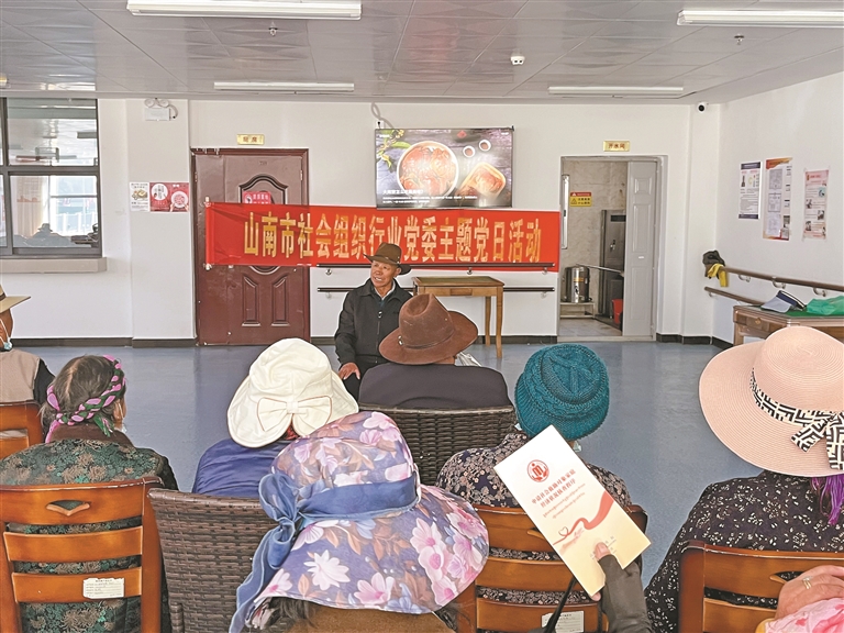 山南市社會組織行業(yè)黨委開展主題黨日活動,老黨員洛桑向大家講述新舊西藏對比。