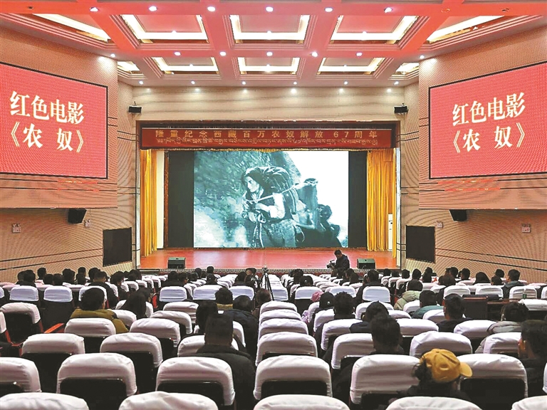 浪卡子縣組織播放紅色電影《農奴》,激勵廣大干部群眾聽黨話感黨恩跟黨走。記者 武沛濤 攝
